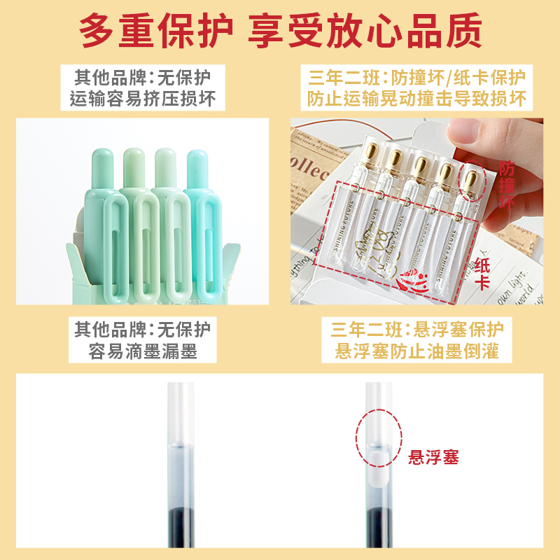 三年二班好运未来静音按动中性笔高颜值黑色学生专用刷题签字笔K