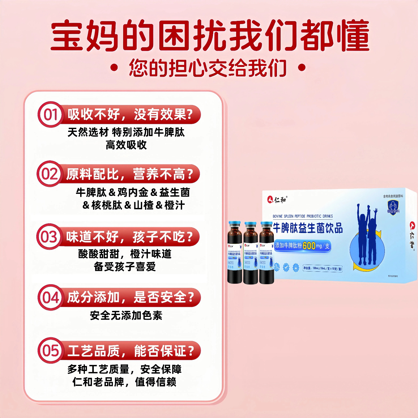 仁和牛脾肽益生菌饮品儿童青少年脾胃口服液营养官方旗舰店正品