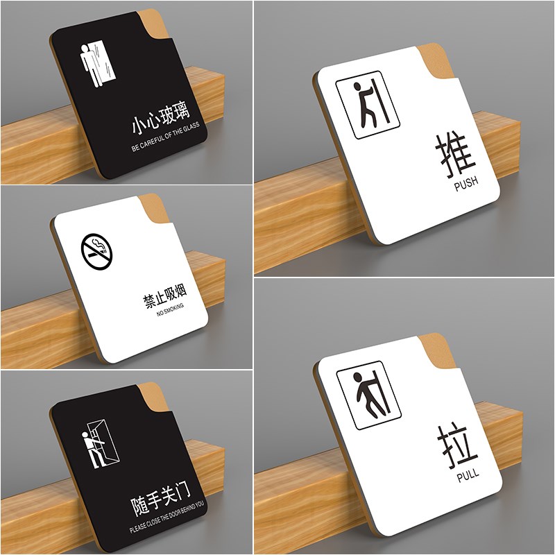 创意酒店玻璃门拉门贴纸随手关门标识牌拉门牌禁止吸烟提示牌