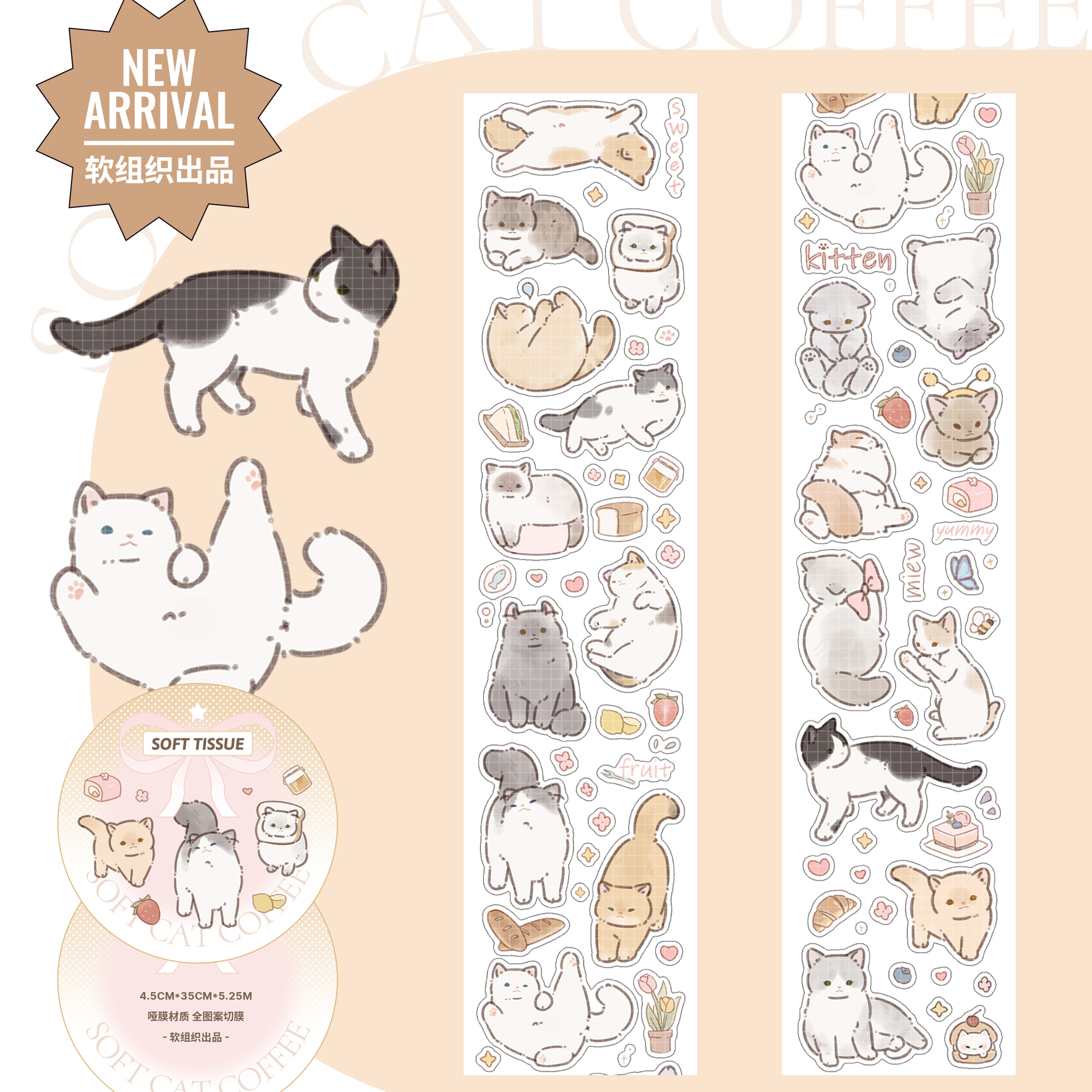 软组织vol.8贴纸卷软软猫咖猫咪分装整循环咕卡手账可爱切膜贴纸
