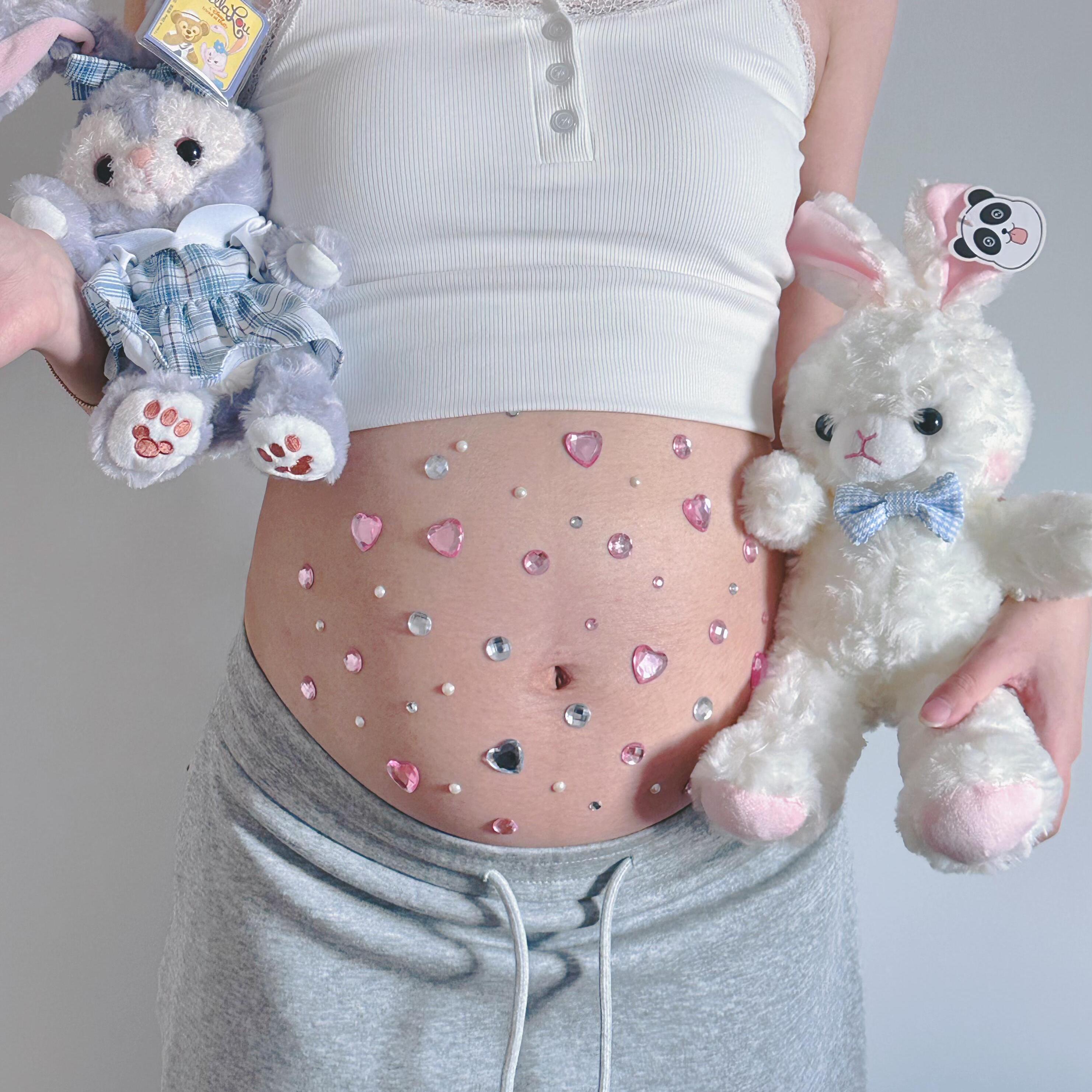 新款孕妇照拍照道具肚皮贴纸孕妈彩色爱心水晶钻石孕肚贴水钻贴画