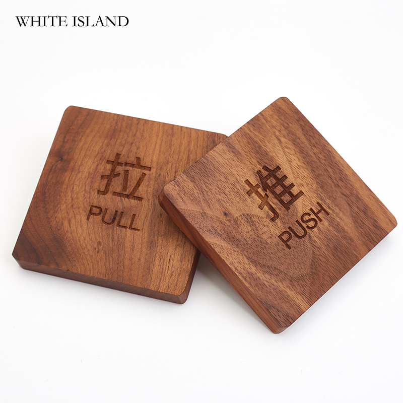 木质推拉门贴创意门推拉贴提示牌门上贴的推拉字Push胡桃木标识牌