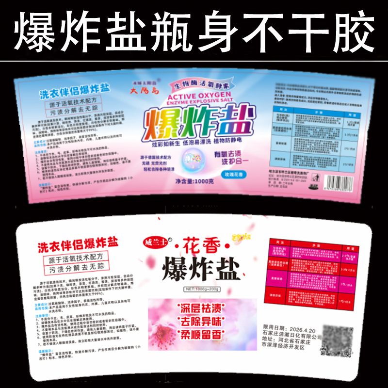 定制爆炸盐魔力粉不干胶彩漂粉漂白粉瓶贴纸商标洗衣液洗洁精瓶身标签防水珠光膜洗衣凝珠包装印刷设计定订做