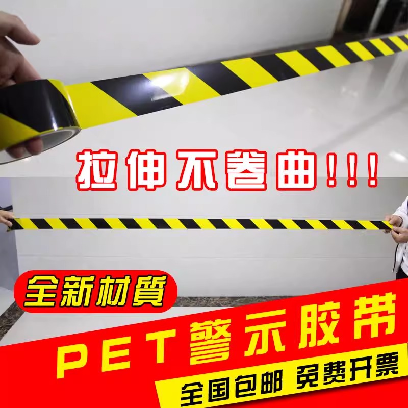 警示胶带强力黄黑斑马线pet防水高粘地面标识车间分区划线贴条安全防撞车位耐磨区域划分场地施工车库停车场