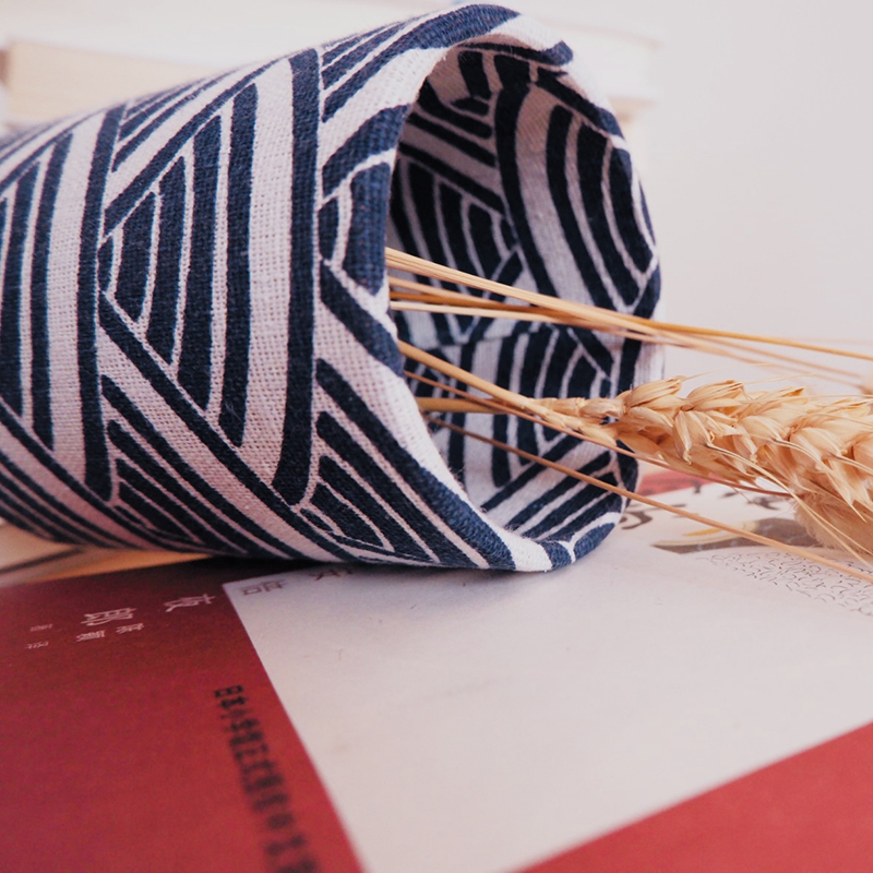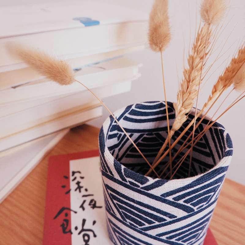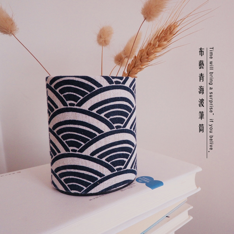 日系和风禅意笔筒收纳桶文具学生大容量笔筒蓝多功能桌面收纳笔桶