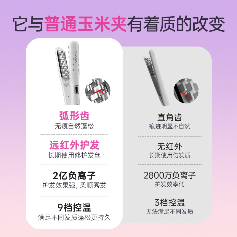 雷瓦迷你玉米烫夹板玉米夹须电头发蓬松器头顶垫发根神器卷发棒