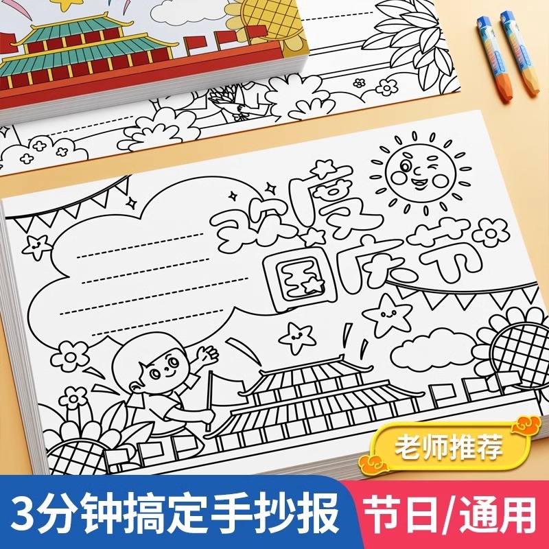 2025年手抄报模板小学生大全半成品a3专用纸绘画a4线稿传统节日版教师节国庆主题读书小报板一二年级8k神器