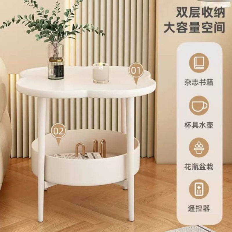 奶油风居家床头柜简约双层储物小茶几客厅沙发边几床头【厂家】