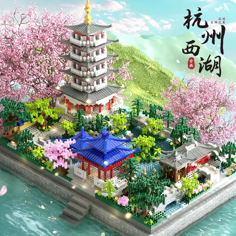杭州西湖积木2025新款高难度巨大型建筑拼装玩具男孩系列礼物拼插