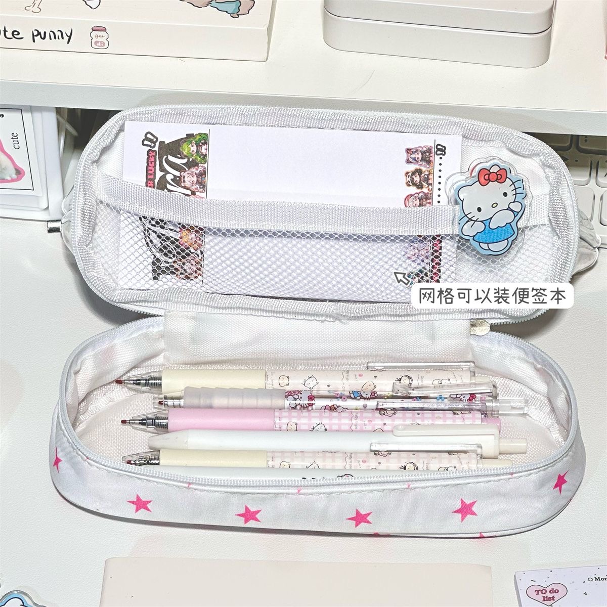 小红书同款摇滚小猫透明笔袋高颜值pvc双层痛包可视窗文具收纳袋