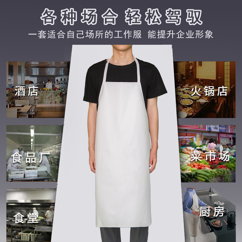 防水防油软皮围裙餐饮专用女食堂厨房白色工作服男厨师食品厂围腰