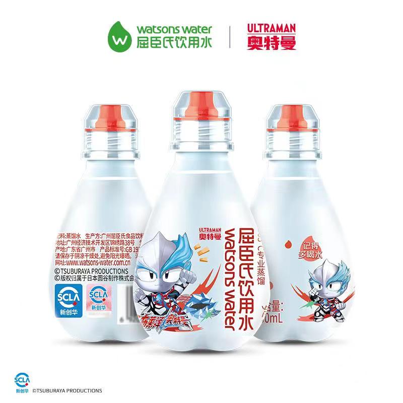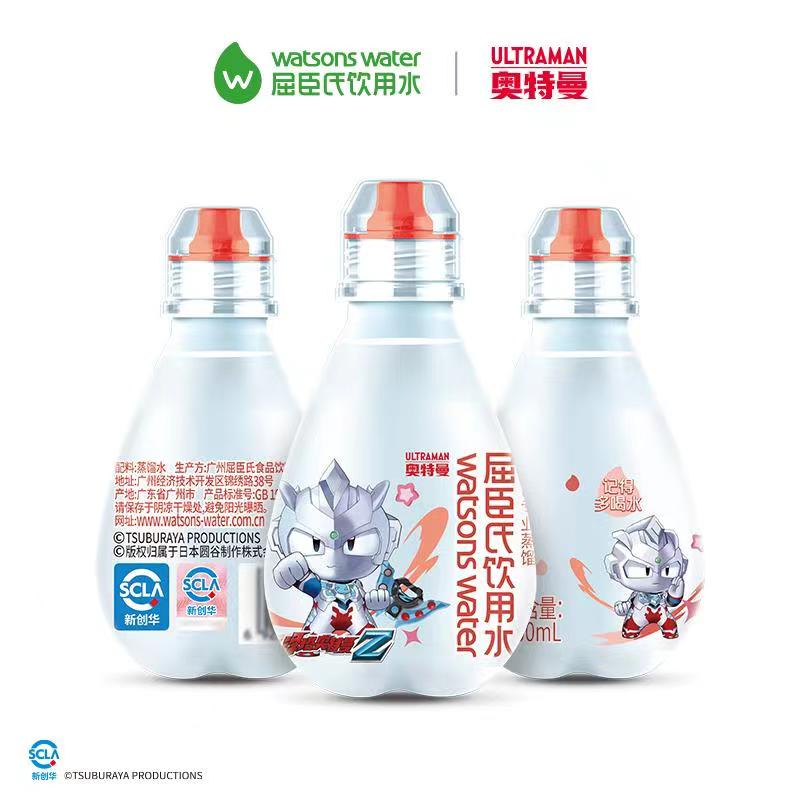 屈臣氏饮用水200ml*12瓶整箱奥特曼联名款儿童蒸馏纯净小瓶饮用水
