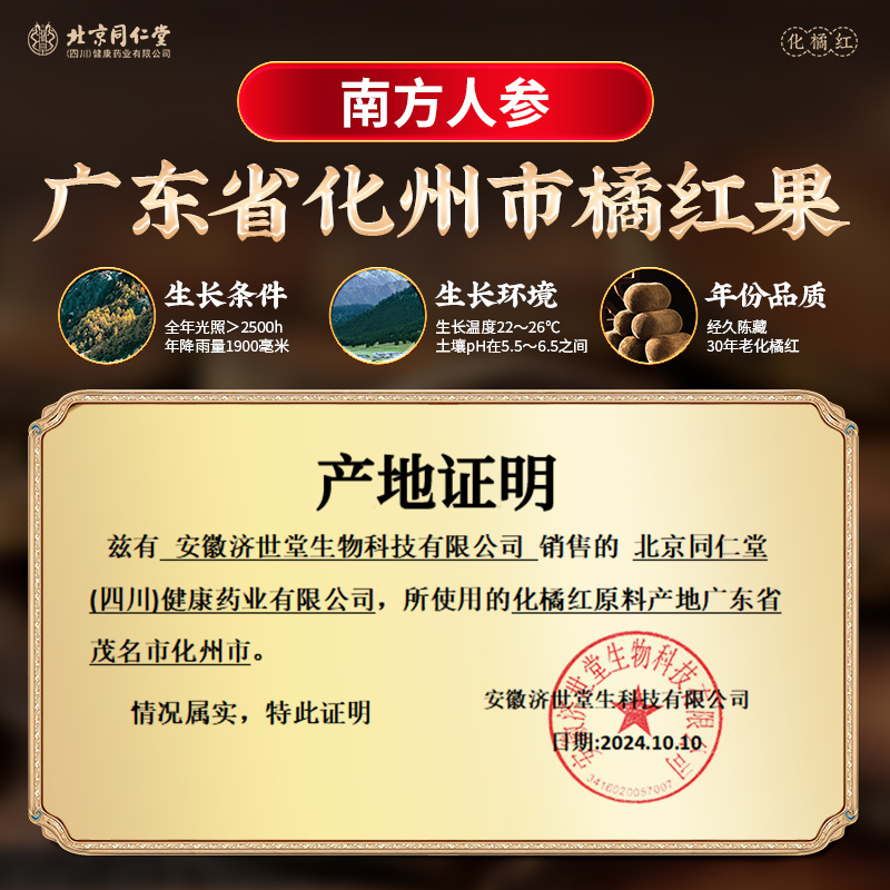 正品化橘红30年正宗化州橘红橘红茶官方旗舰店北京同仁堂胎果人参