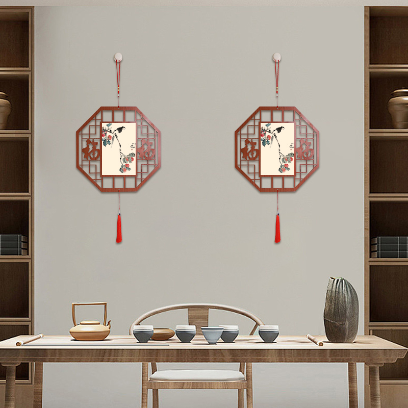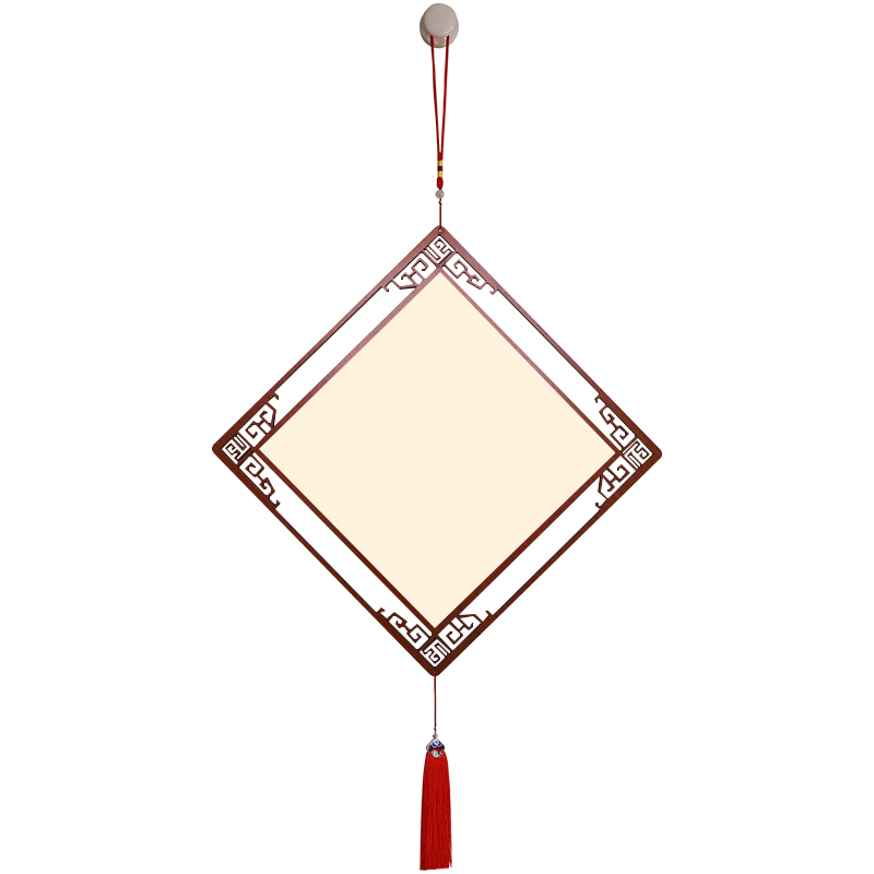 新中式仿古生宣木质镂空宣纸挂件 空白福字国画空白纸书法斗方手写洒金对创意灯笼新年春节过年装饰