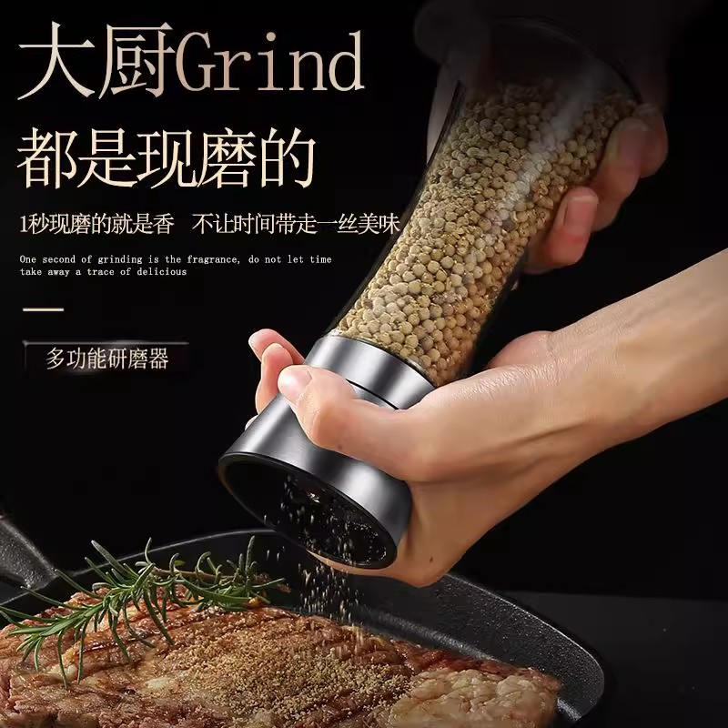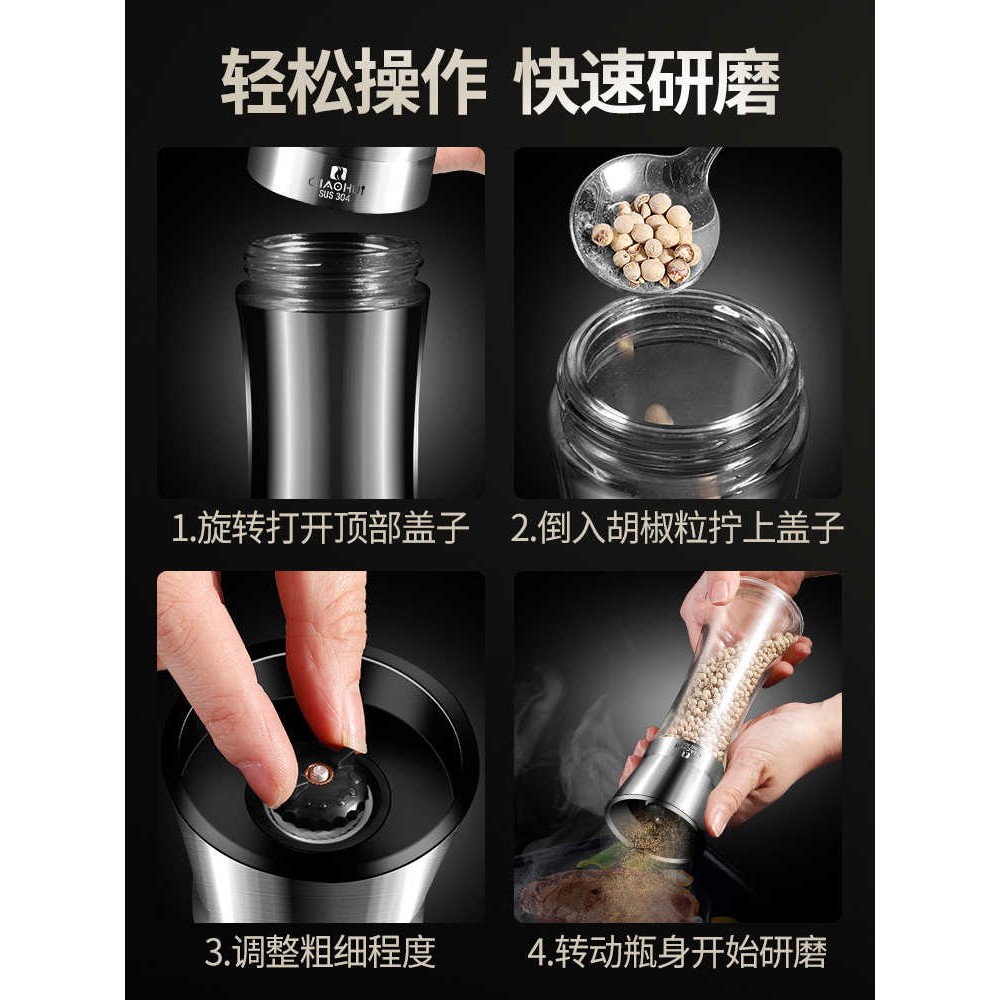 胡椒研磨器304不锈钢家用手动厨房花椒黑胡椒粉粒芝麻海盐撒料瓶