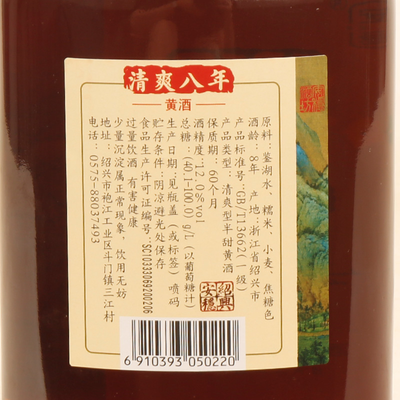 绍兴产安稳一级花雕酒清爽八年黄酒6瓶装12度半甜型自饮推荐