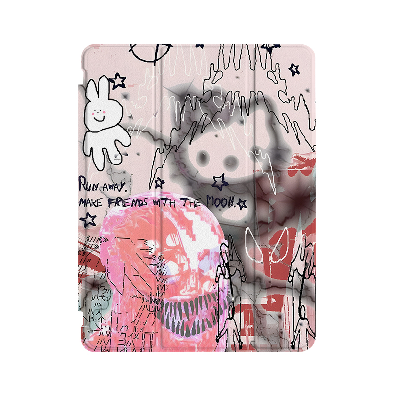 日系插画恶魔kt猫艺术ins小众适用平板壳iPad7/8/9/10壳2020带笔槽Air2/3/4/5苹果2021第九代11Pro三折min