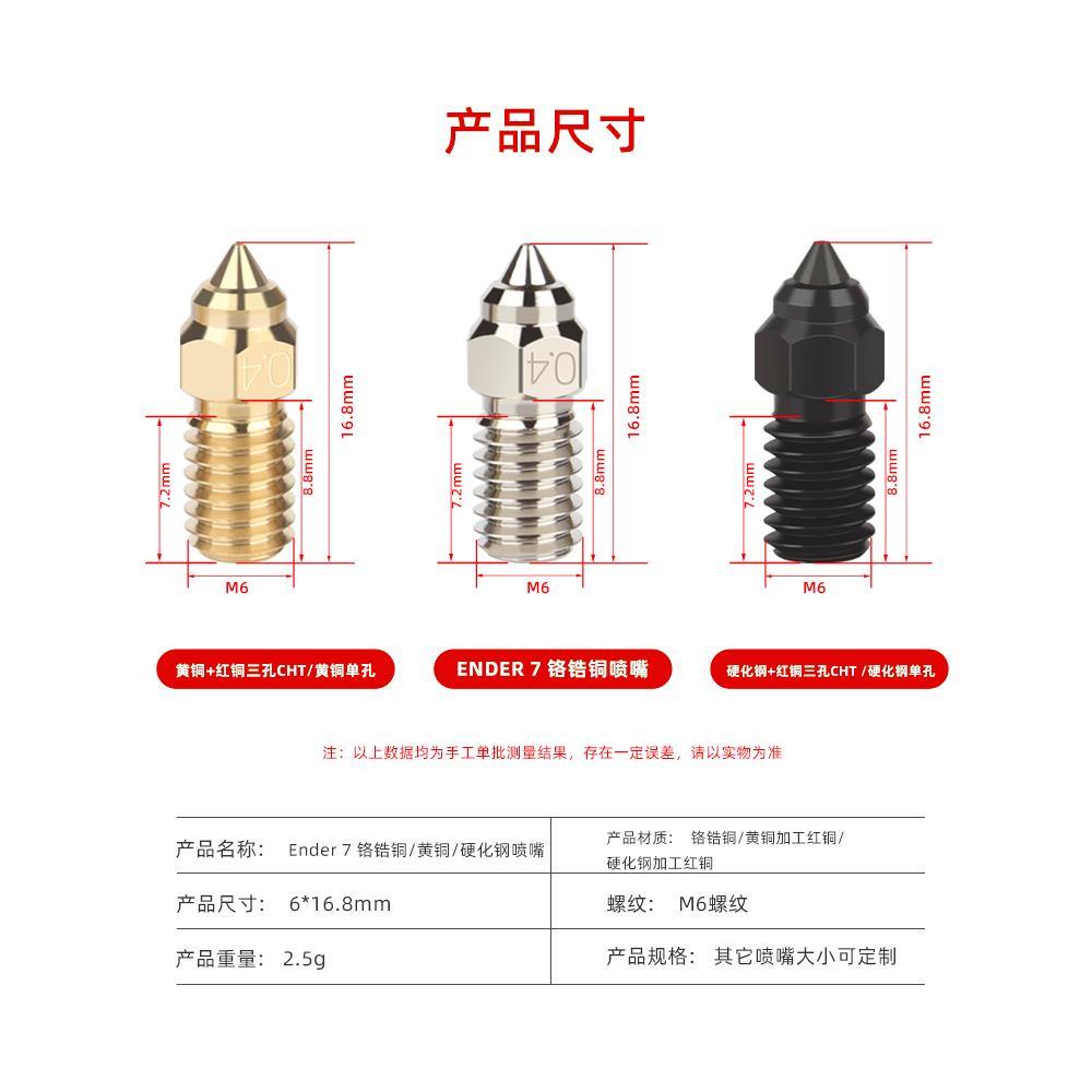 3D打印机配件Ender7铬锆铜黄铜喷嘴1.75mm耐高温腐蚀光滑喷头