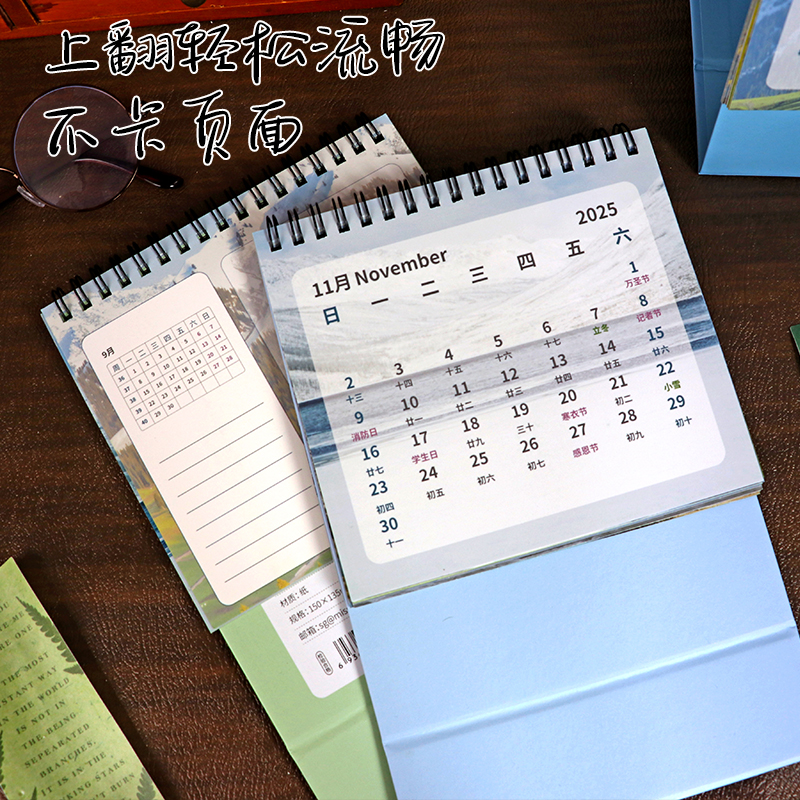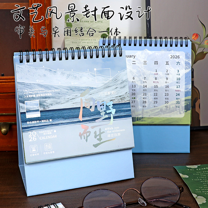 向野而生创意风景台历2025-2026年新款高级感桌面摆件上班族记事工作打卡记录本多功能日历高颜值小众月历