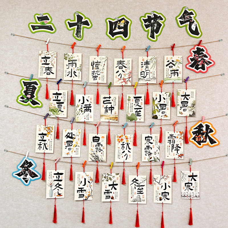 知砚24二十四节气创意装饰挂卡毛毡墙布置春夏秋冬季节中国风复古传统挂卡片学校班级环创墙挂饰手写留言贺卡