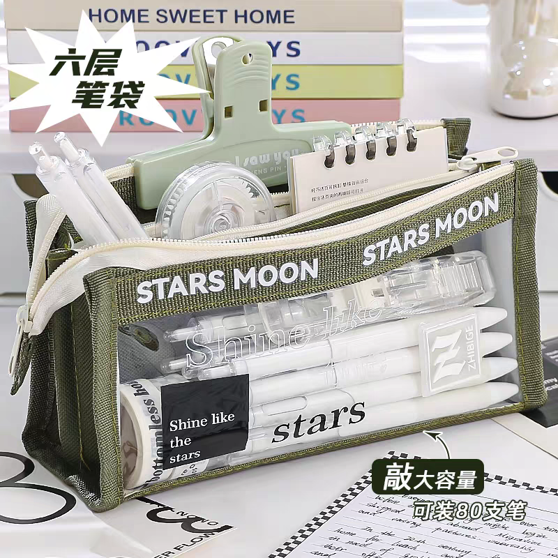 透明痛包三角笔袋男生高颜值文具盒女孩小学生专用收纳袋多层大容量初中生铅笔盒简约小众不撞款学习用品高中