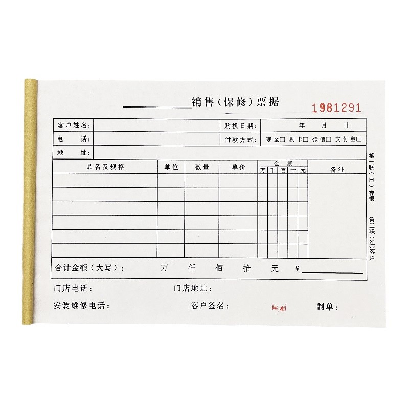 二联销售保修票据定制三联钟表首饰质量保证单订做商品售后维修单