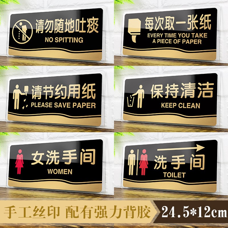 亚克力洗手间指示牌卫生间厕所标识禁止吸烟小心台阶碰头请勿门牌