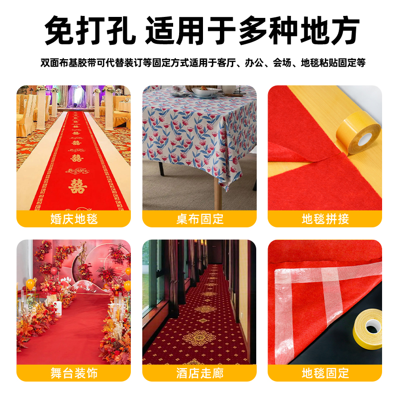 布基胶带网格双面高粘度家用地毯地垫防滑拼接墙面相框照片粘贴排插固定防水耐高温可手撕强力无痕不留胶胶布