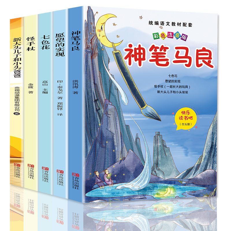全套5册神笔马良二年级必读注音版快乐读书吧七色花愿望的实现一起长大玩具书籍阅读课外书二下4册Z父与子古诗故事全集正版经典