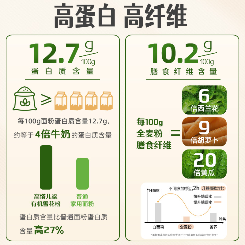 有机全麦粉内蒙高塔儿梁全麦面粉粗粮含麦麸烘焙面包粉5斤家用