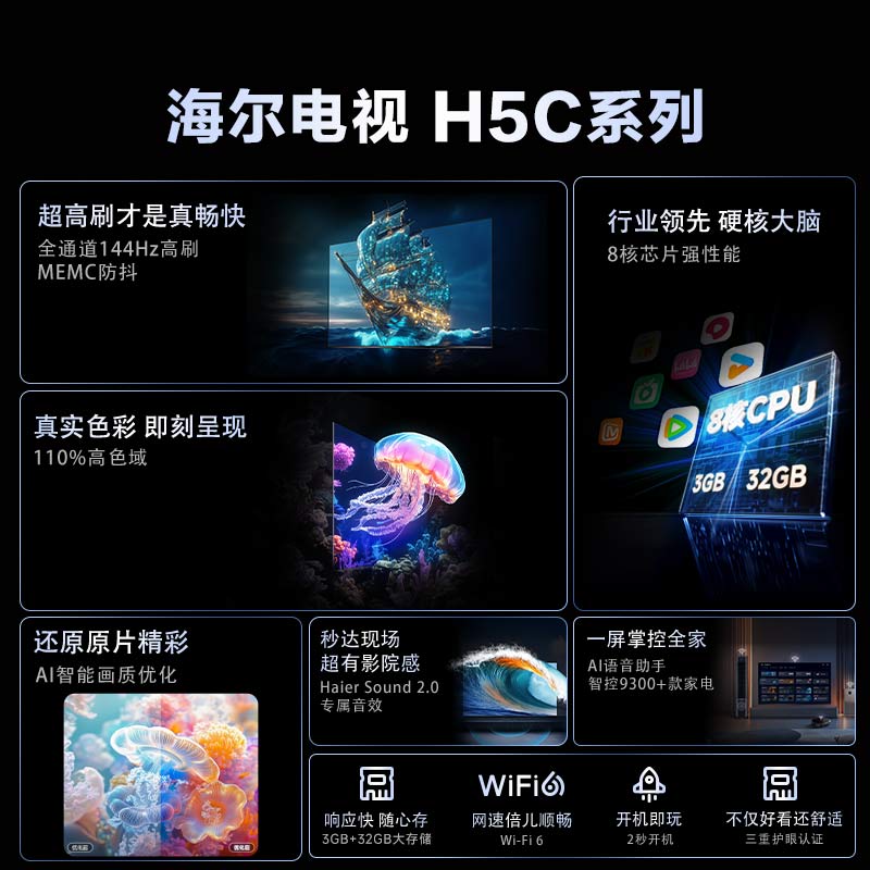 海尔国民AI电视65H5C 2025新款65英寸家用液晶电视机以旧换新补贴