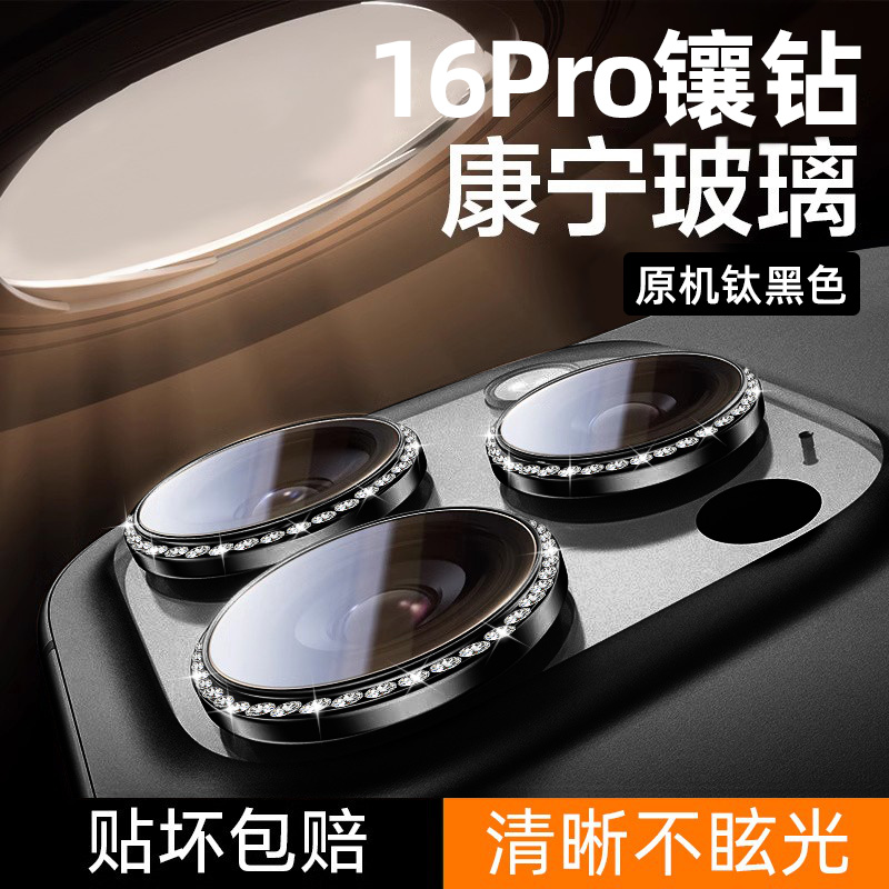 适用苹果17promax水钻镜头膜镶嵌闪钻AR增透高清iPhone17pro手机后置摄像头高清保护膜新款17防摔相机保护膜