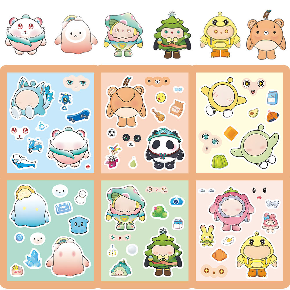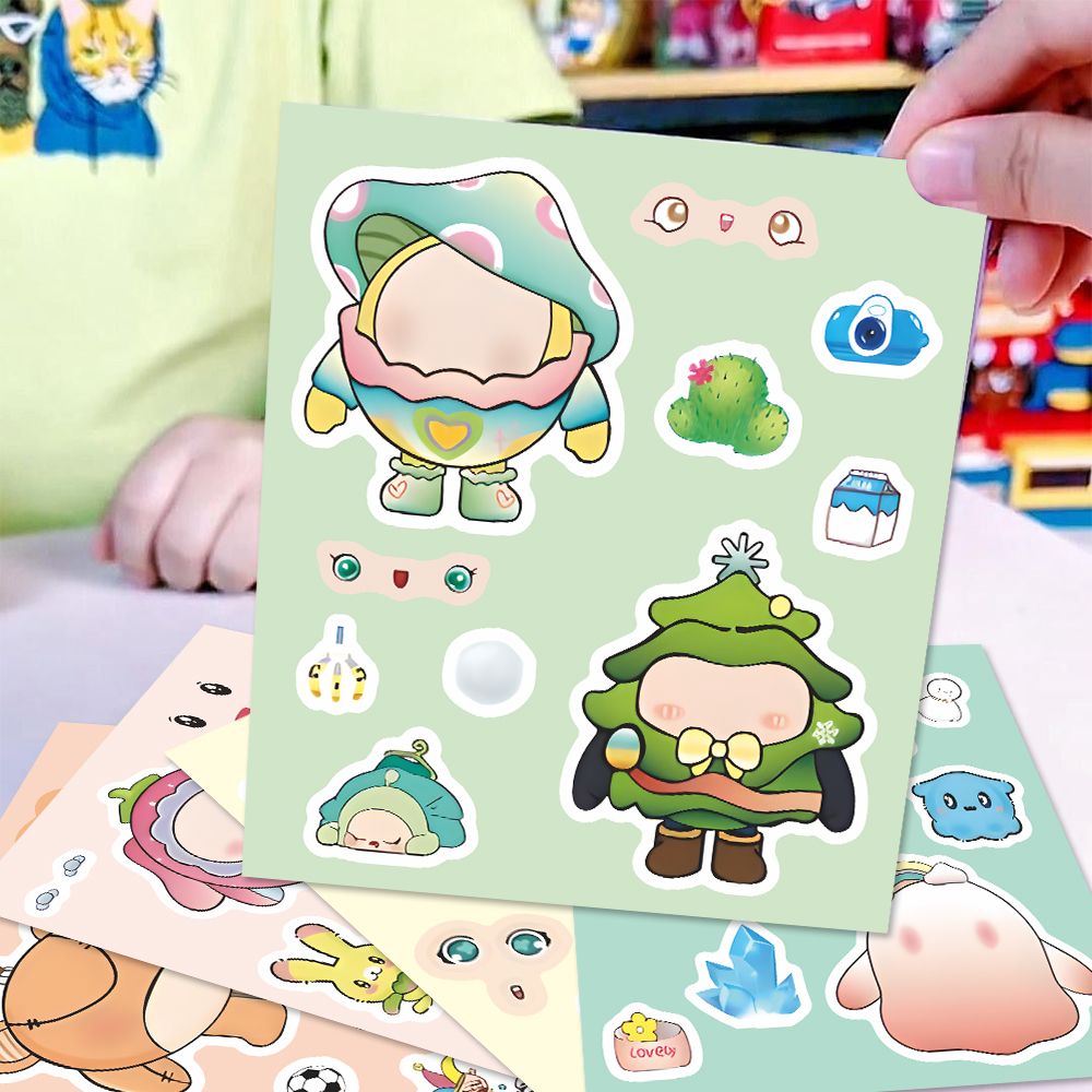 萌崽新款果冻贴纸安静书卡皮巴拉女孩免裁剪diy材料包儿童益智玩具