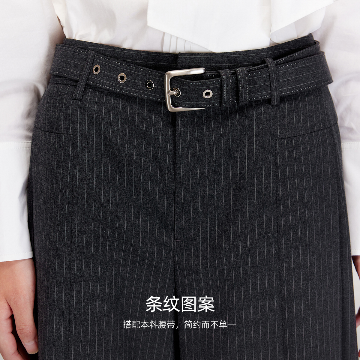 9.24上新Vero Moda休闲裤女2025秋冬新款腰带条纹简约垂坠阔腿裤