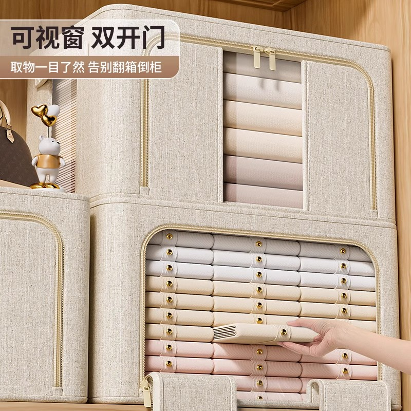 佳帮手衣服收纳箱家用装衣物被子百纳箱布艺可视窗衣柜专用整理箱