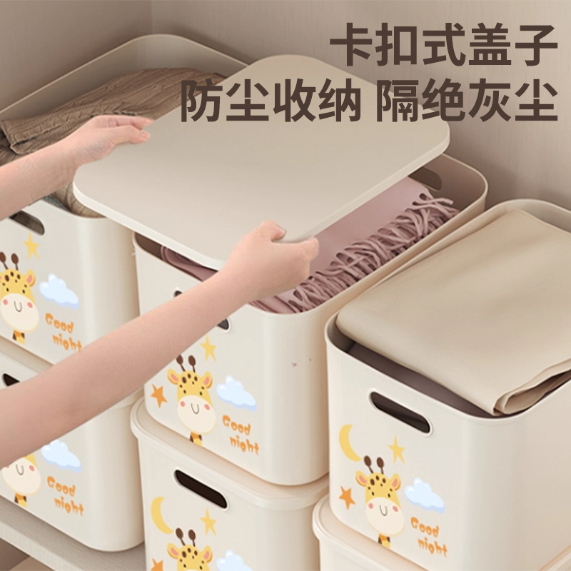 2个装收纳箱家用大容量整理箱玩具零食书本长方形带盖杂物储物箱