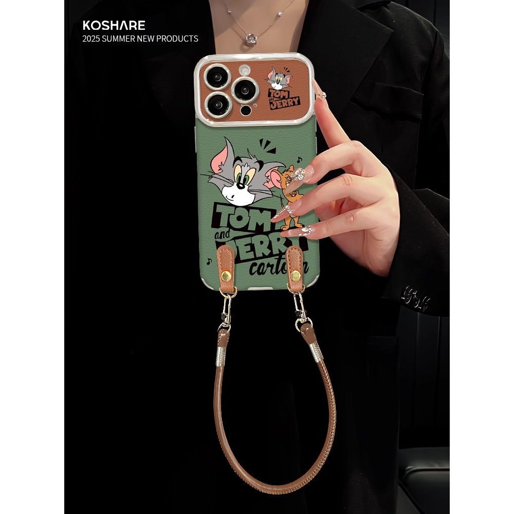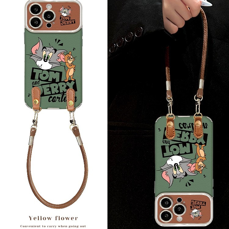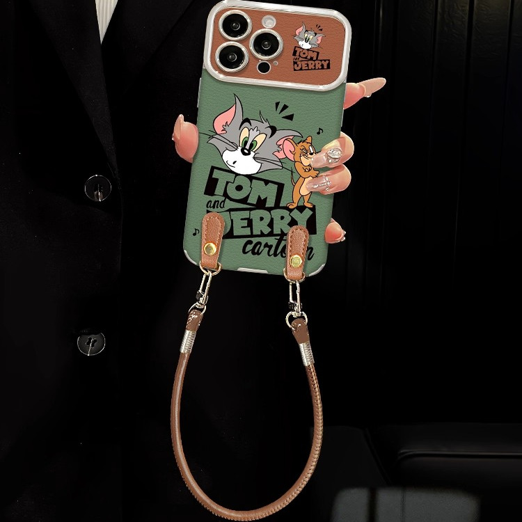 适用苹果16pro手机壳新女款15promax可爱猫和老鼠挂绳iPhone14plus小众高级感13大视窗羊皮11电镀12秋冬防摔