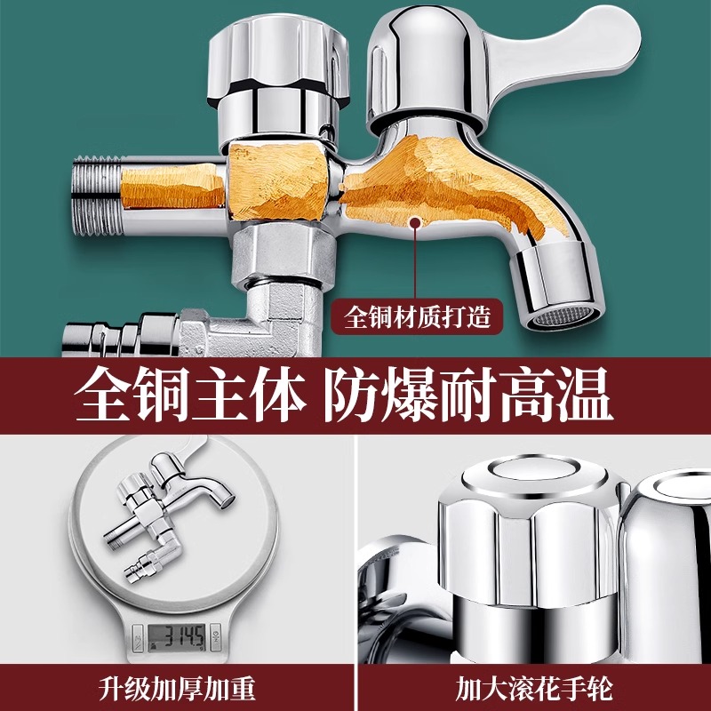 全铜洗衣机水龙头一进二出双头双用专用双出接头三通多功能一分二