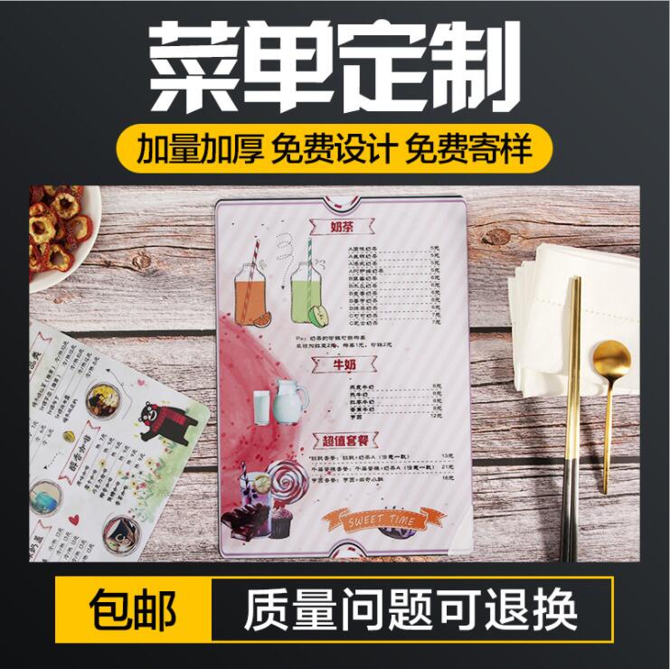 PVC菜单定制防水菜牌菜谱制作 a4塑料pp点餐单价目表奶茶设计印刷