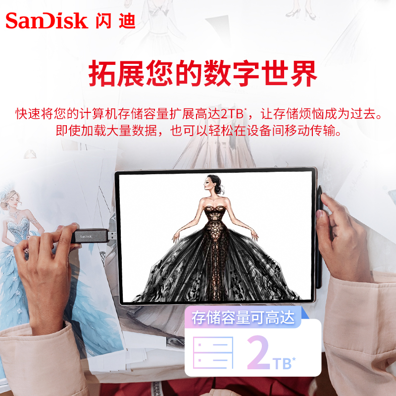 闪迪官方正品高速固态电脑U盘512g大容量1TB移动优盘CZ880升级款
