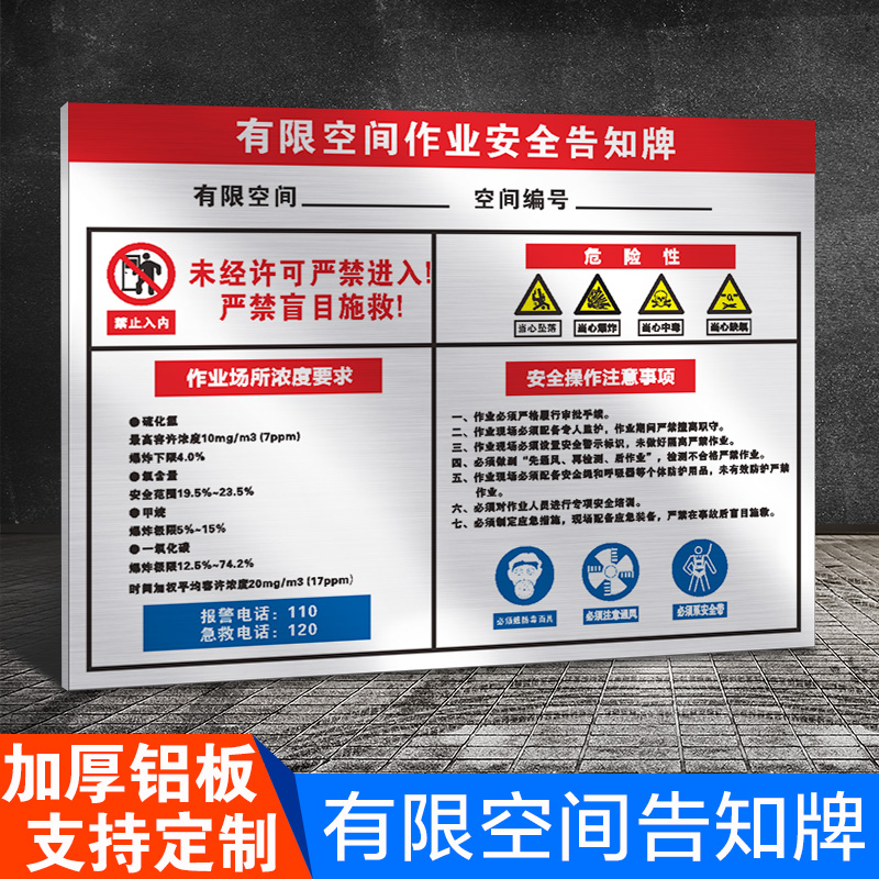 有限空间铝板警示牌有限空间安全告知牌受限空间安全告知牌警示标牌标识牌风险点告知牌职业病危害告知卡定做
