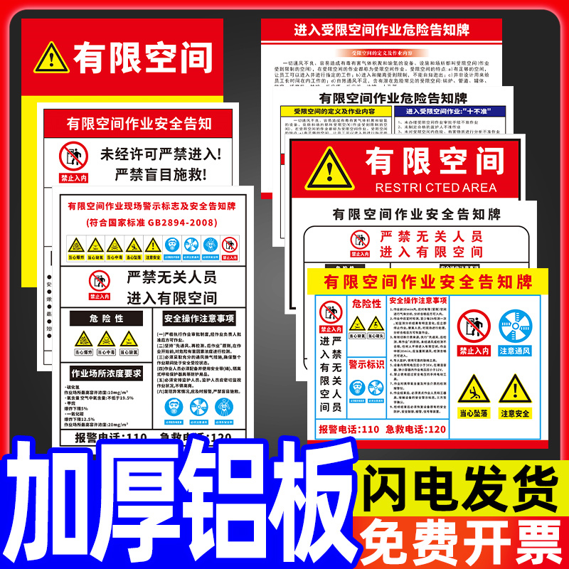有限空间警示标识牌作业安全告知牌受限空间指示牌工厂生产车间闲人免进密闭空间危险标示贴纸告示标志牌定制