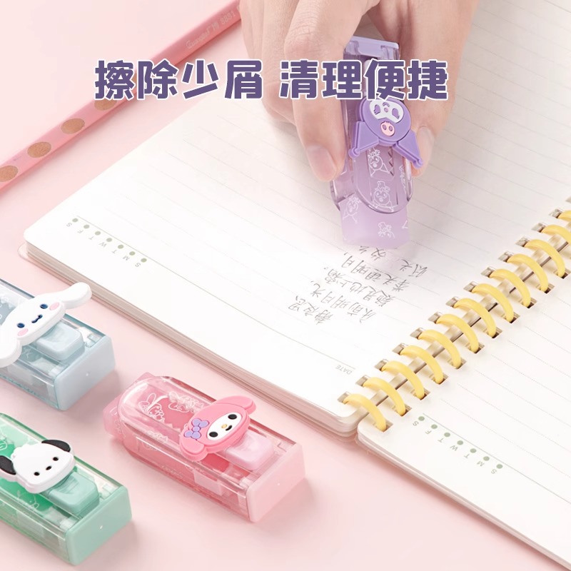 广博三丽鸥库洛米推拉橡皮擦小学生专用无屑干净推动伸缩橡皮擦字成线像皮不留痕幼儿园象皮擦美术绘画工具