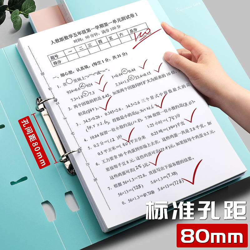 2个装两孔活页夹a4双孔打孔器专用文件夹子二孔穿孔夹办公用品纸质文件资料装订夹学生用试卷夹diy活页本外壳