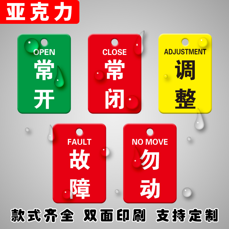 亚克力常开常闭标识牌挂牌调整调节故障提示牌消防水泵喷淋泵稳压泵室内外悬挂标牌管道阀门设备运行吊牌定制