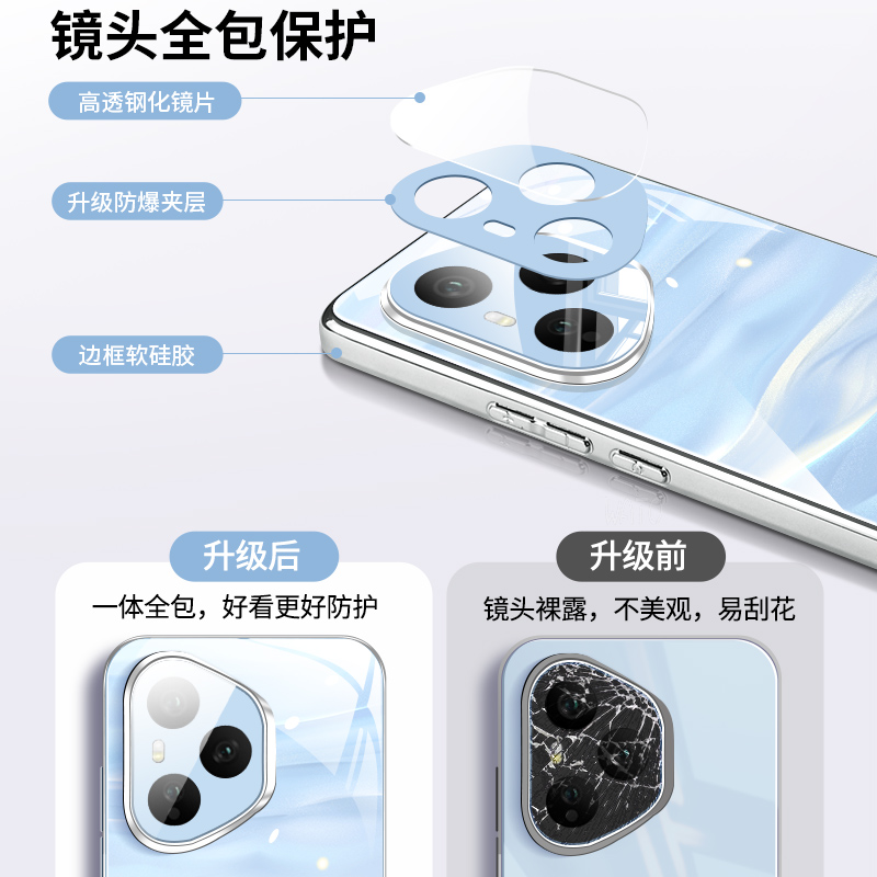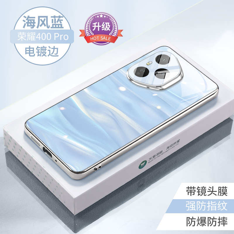 适用荣耀400pro手机壳荣耀400新款镜面玻璃honor海风蓝专用外壳镜头全包防摔流沙粉高级感男女保护套系列后壳