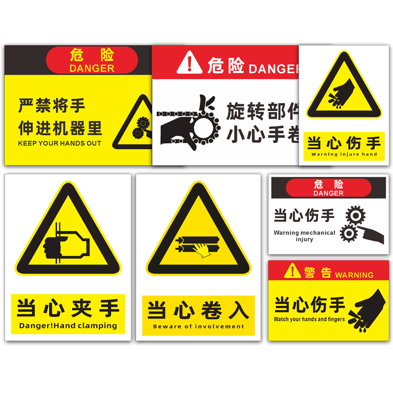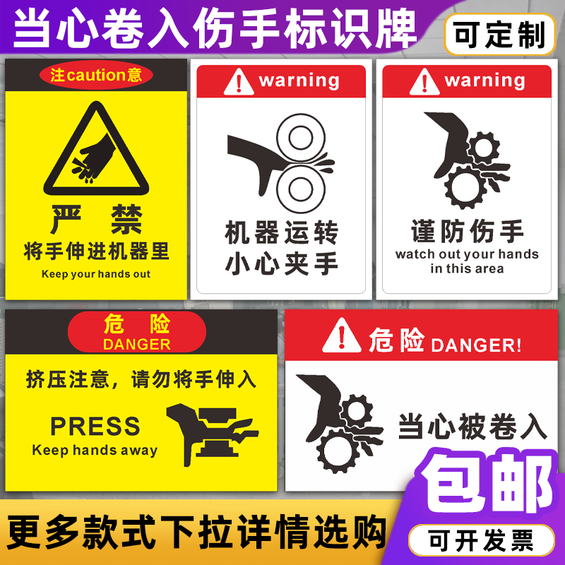 当心卷入伤手标识牌机械操作当心夹手严禁将手伸进机器警示牌定制