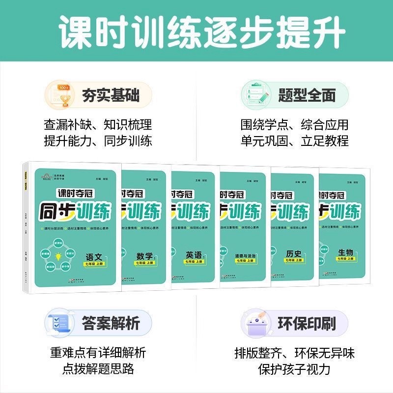 2025新版初一七年级上册同步训练练习册语文数学英语真是历史生物人教版初二八年级上课时必刷题训练教辅资料书夺冠初中