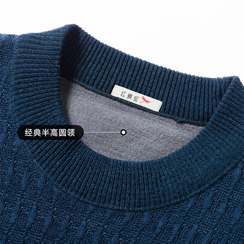 【烈儿宝贝直播间】红蜻蜓男士圆领毛衣加绒提花冬季中年打底衫男