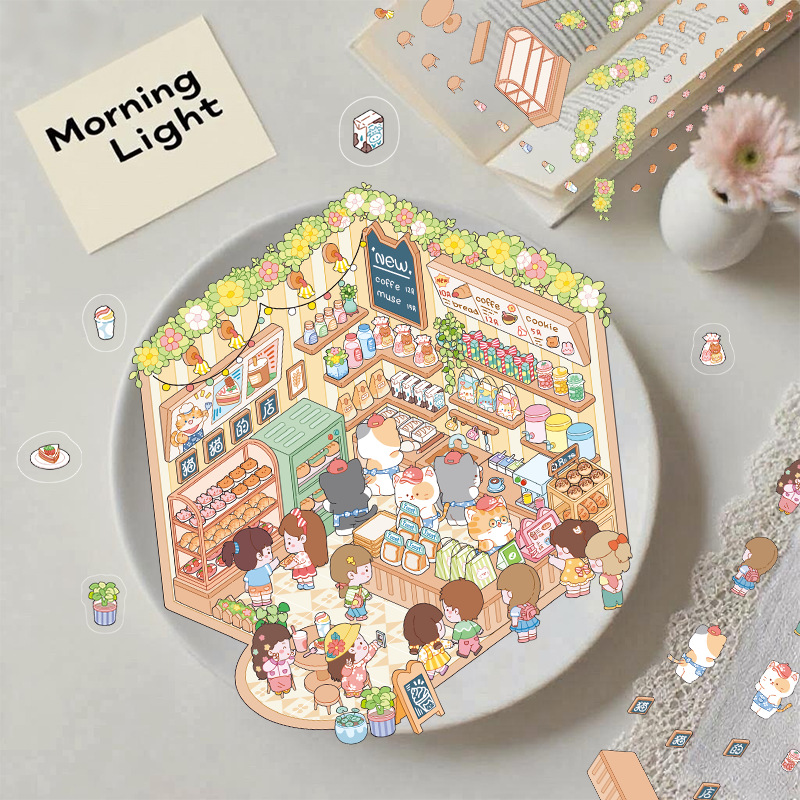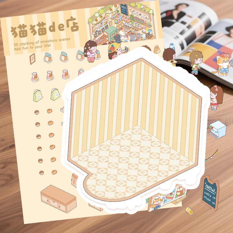 猫猫的店3D立体造景贴纸创意场景免裁剪微缩世界diy手帐贴纸拼贴